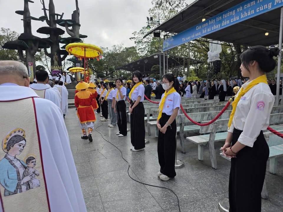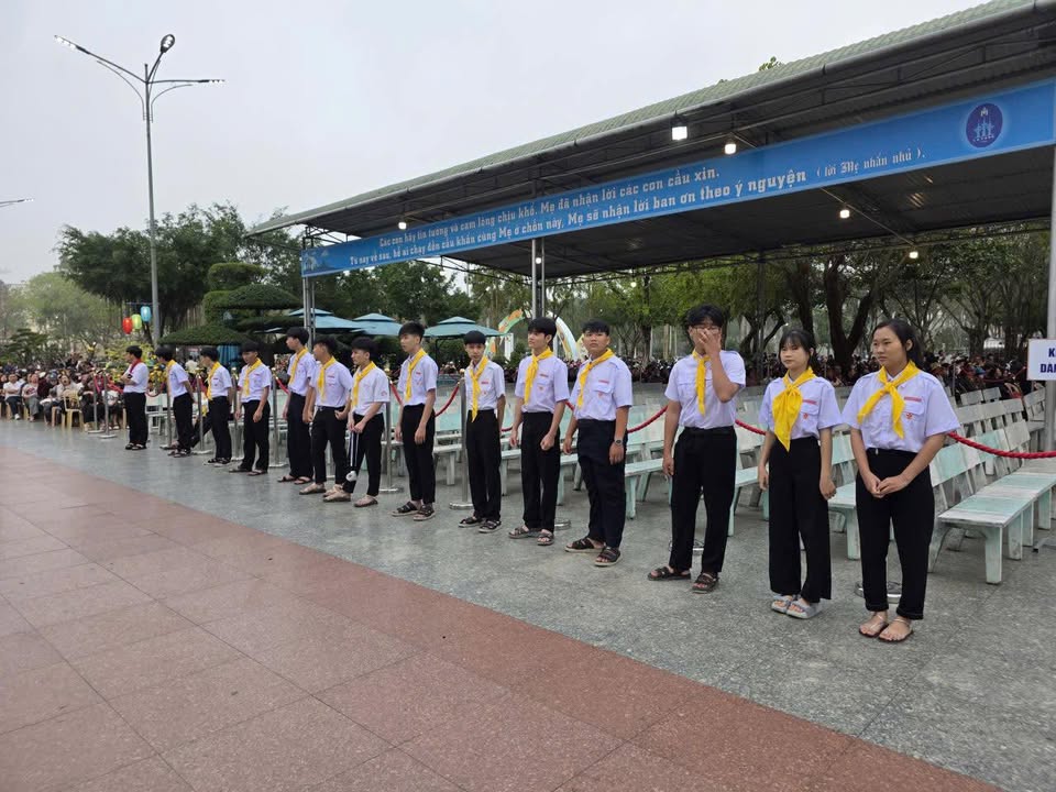 Trong bầu khí rộn ràng và tràn đầy hy vọng của những ngày đầu xuân, các bạn trẻ Dương Sơn đã cùng nhau hành hương về bên Mẹ La Vang. Nơi linh địa linh thiêng ấy, các bạn đảm nhận nhiệm vụ giữ gìn trật tự lễ nghi trong Thánh lễ Minh Niên, âm thầm góp phần để buổi cử hành đầu năm được trang nghiêm và sốt sắng. Chuyến hành hương không chỉ là một hành trình phục vụ, mà còn là hành trình của tâm hồn: các bạn dâng lên Mẹ những ước nguyện đầu năm, trao phó những dự định, những quyết tâm, và xin Mẹ chở che, đồng hành suốt chặng đường phía trước.
